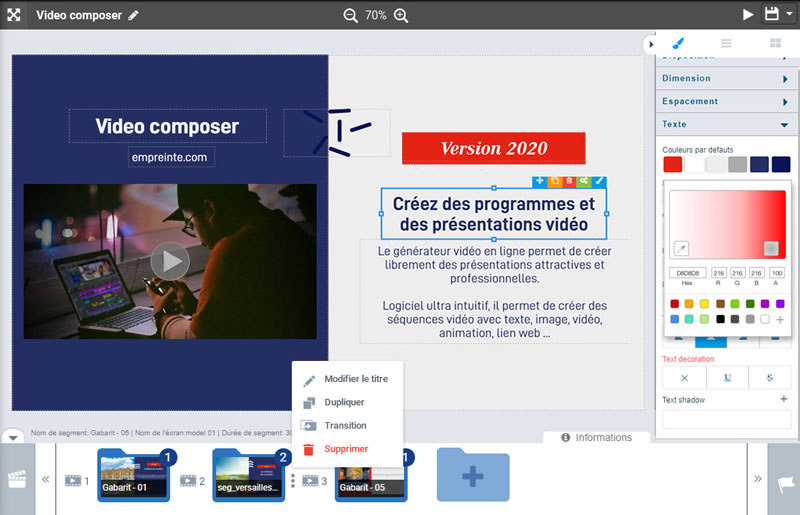 Le Générateur vidéo en ligne a été pensé pour des vidéos attractives, créées à partir de plusieurs médias : images, textes, vidéos.